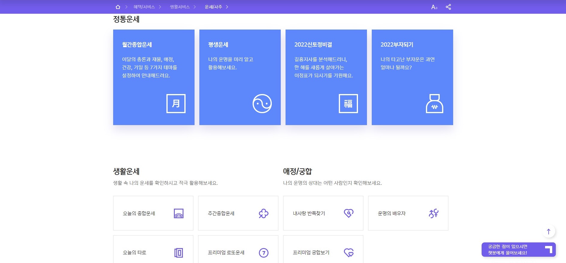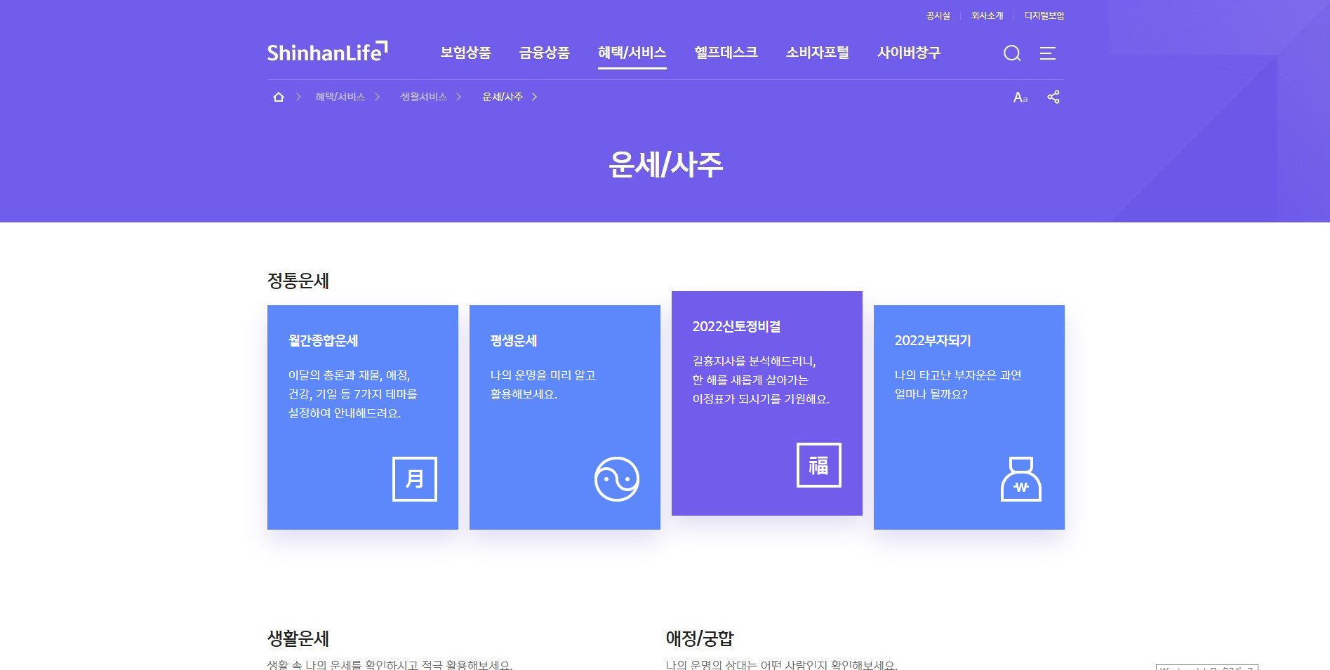 혜택/서비스 > 생활서비스 > 운세/사주