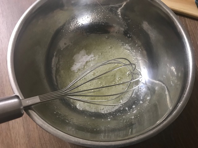 어느 정도 머랭의 형태가 잡히면 레몬즙을 넣어준다.