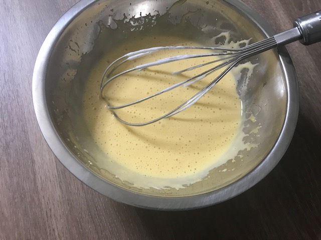 노른자에 우유 또는 두유를 넣고 잘 섞어준다.