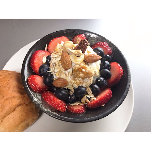 딸기랑 블루베리 위에 둥글게 올려 주었어요.