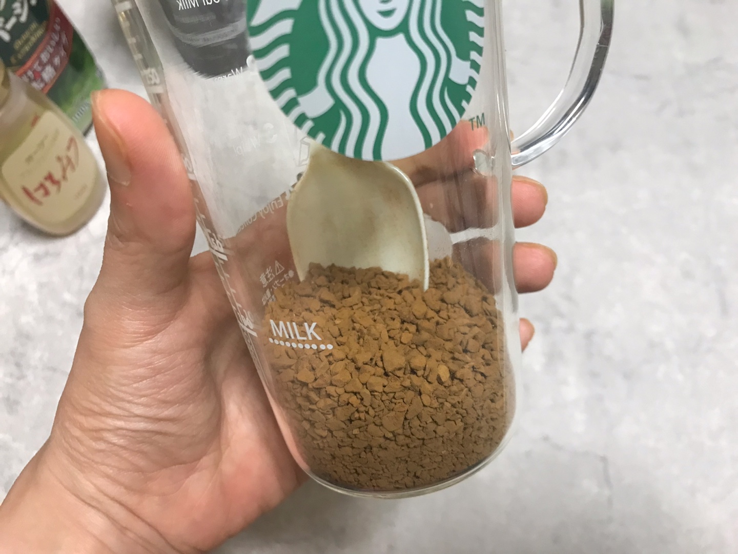처음 인스턴트 커피랑 다이소 공병을 사와서
