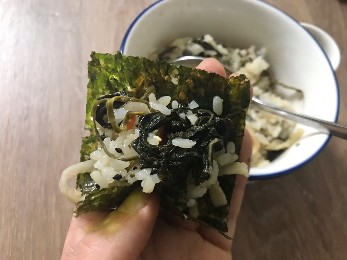 내가 좋아하는 김의 간장을 넣어 비벼 봤다.