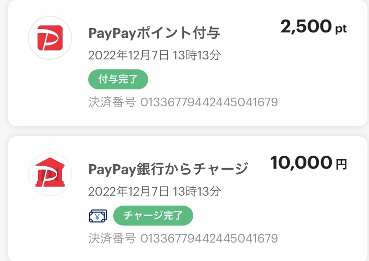 10000엔 차지하면 2500엔이 또 입금됨.