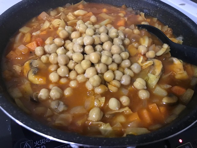 병아리콩을 미리 삶아 놓았다면 야채를 어느정도 익힌