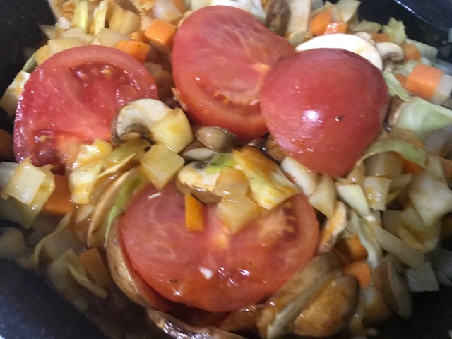 그리고 토마토도 넣어주고 볶아 주세요.