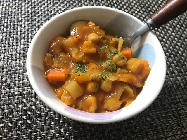 이렇게 야채랑 병아리콩 듬뿍 넣고 끓인 토마토 스프!