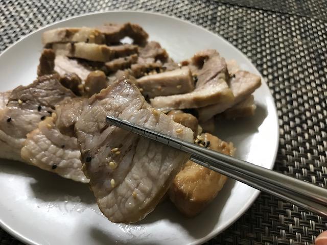 익히고 나서도 겉에 좀 남아있던 비계를 잘라 냈거든요.