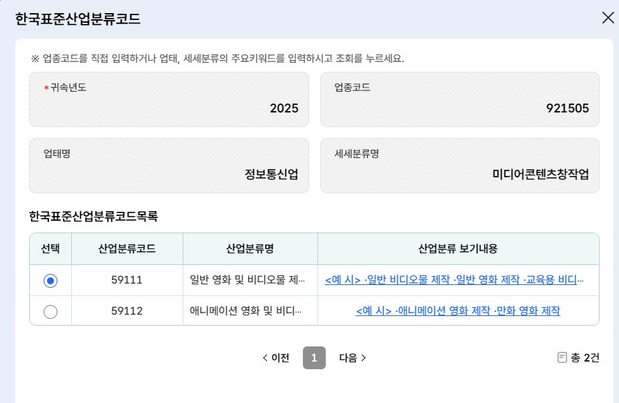 다른 사업수익도 있고해서 전 미디어콘텐츠 창작업으로 했습니다.