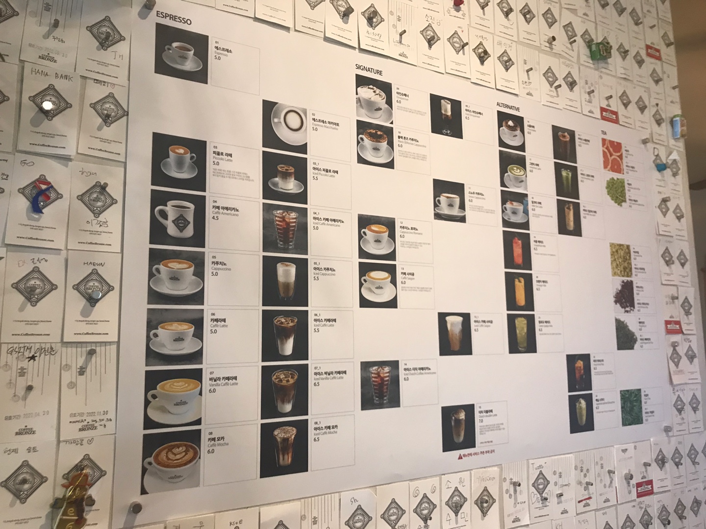 벽면에 크게 메뉴들이 붙어 있어서